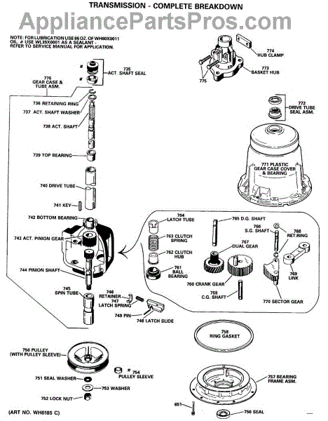 Parts for Ge WLW3600SBLWH: 03 - Transmission - Complete Breakdown Parts