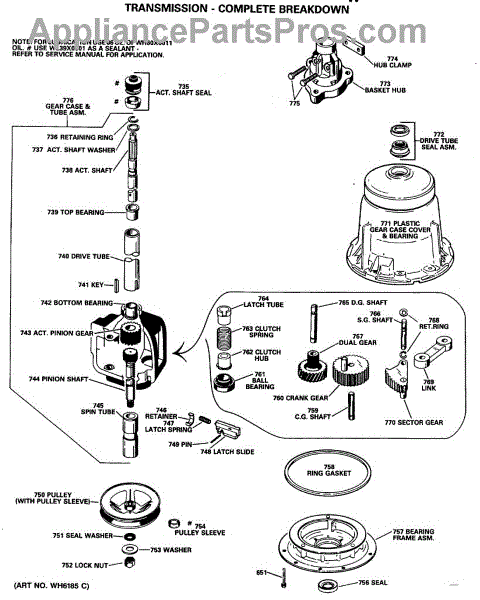 Parts for Ge WRW4600SALWW: 03 - Transmission - Complete Breakdown Parts