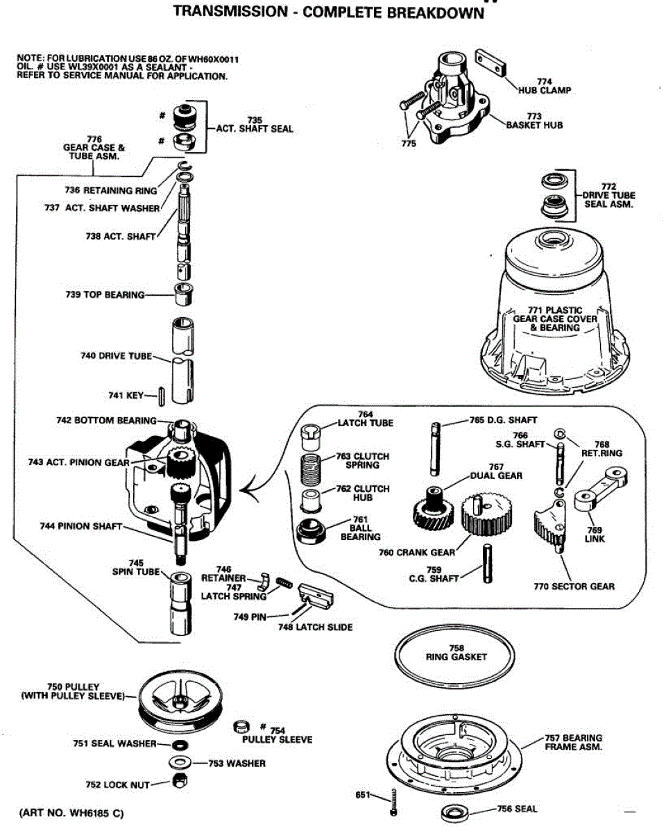 Parts for Ge WRW4800SALWW: 03 - Transmission - Complete Breakdown Parts