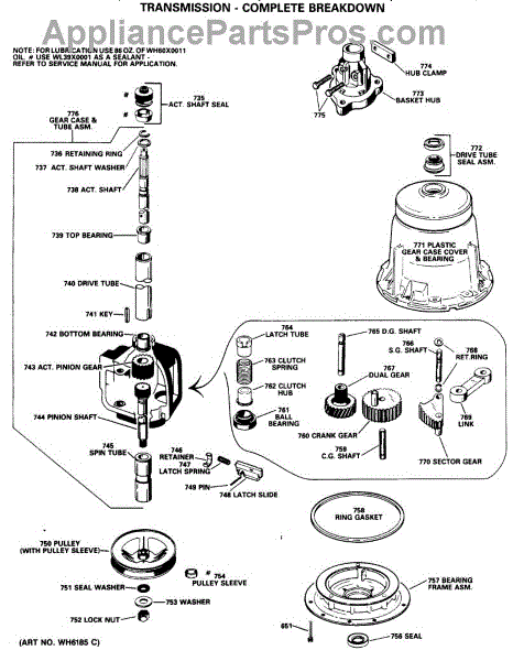 Parts for Ge WWA8620SALWW: 03 - Transmission - Complete Breakdown Parts