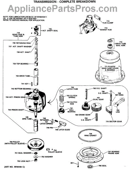 Parts for Ge WWA8695SBLAA: 03 - Transmission - Complete Breakdown Parts