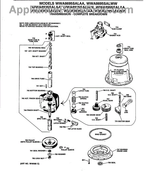 Parts for Ge WWA8935SALWW: 03 - Transmission - Complete Breakdown Parts