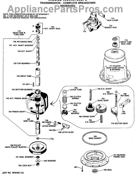 Parts for Ge WLW3700BPL: 03 - Trasmission - Complete Breakdown Parts