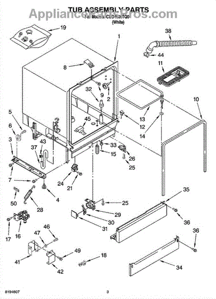 The Deflector is an OEM replacement part for Whirlpool dishwashers. Located in the lower corners of the tub, this component works to prevent leaks by keeping water from entering the cracks along the tub edges.