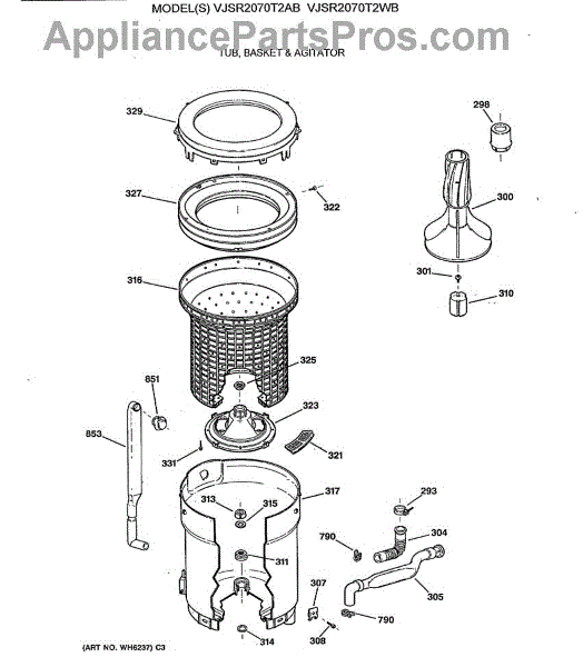 Parts for Ge VJSR2070T2WB: 03 - Tub, Basket & Agitator Parts