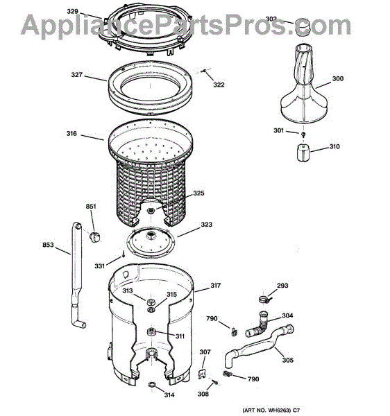 Parts for Ge VVSR1070B3WW: 03 - Tub, Basket & Agitator Parts