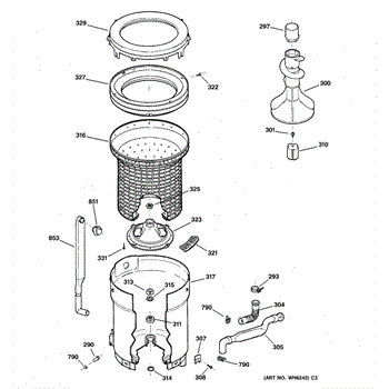The Agitator Assembly is an OEM part for GE washing machines. This essential component is responsible for moving clothes during the wash cycle, ensuring thorough cleaning by continually shifting the laundry within the drum. The agitator's design includes fins or vanes that help to circulate water and detergent through the clothes, effectively removing dirt without causing excessive wear to the fabric.