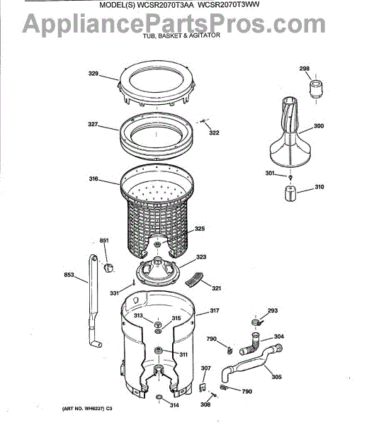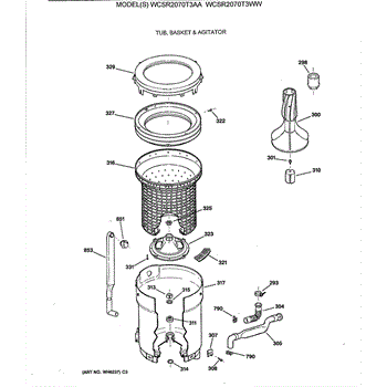 Parts for Ge WCSR2070T3WW: 03 - Tub, Basket & Agitator Parts