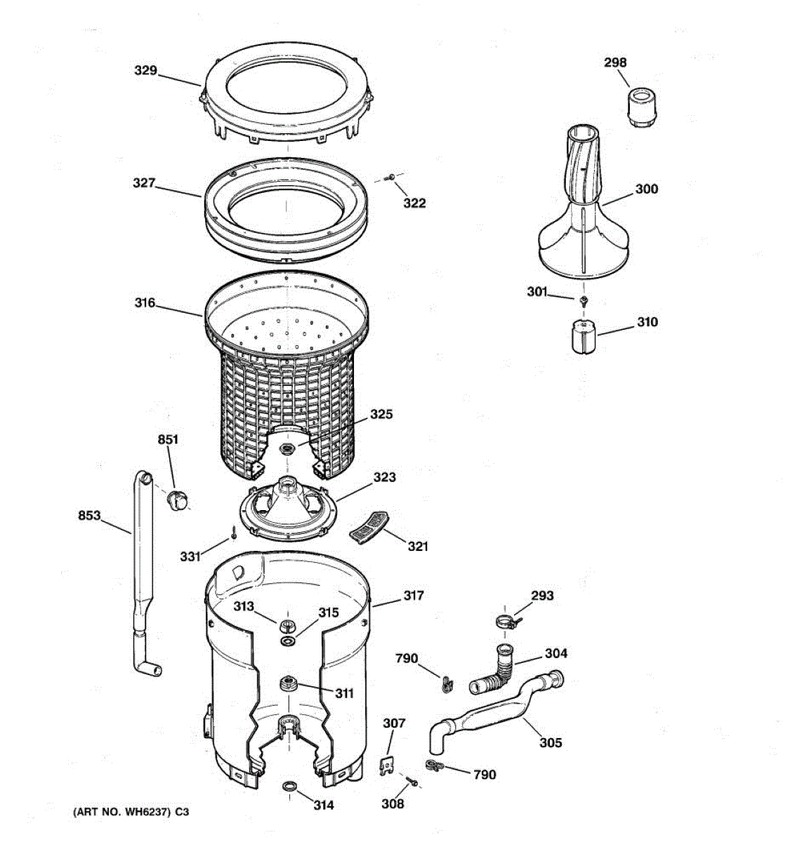 Parts for Ge WCSR2070TAWW: 03 - Tub, Basket & Agitator Parts