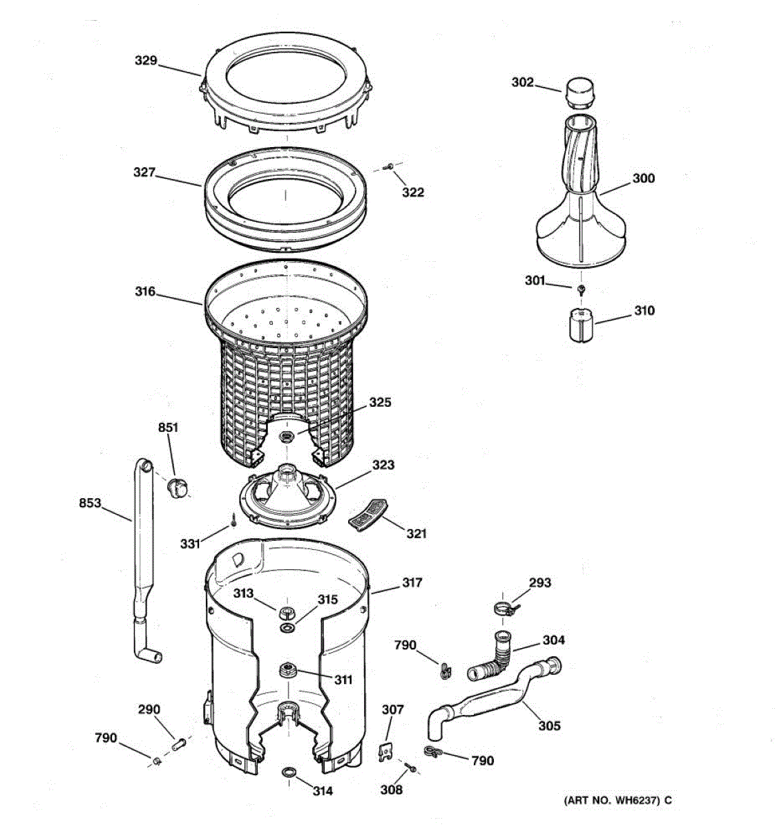 Parts for Ge WLXR1020T5WB: 03 - Tub, Basket & Agitator Parts