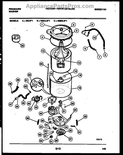The Spin Bearing Washer is an OEM part for Frigidaire washing machines. Situated inside the transmission housing, this thin metal washer acts as a subsurface support for the belt pulley bearing. The spin-bearing washer facilitates smooth, balanced rotation essential for agitated and spun wash cycles. Causes of a bad spin-bearing washer include wear and fatigue from years of successive rotations, potentially allowing excessive movement between housing components. Symptoms of a bad spin-bearing washer involve: