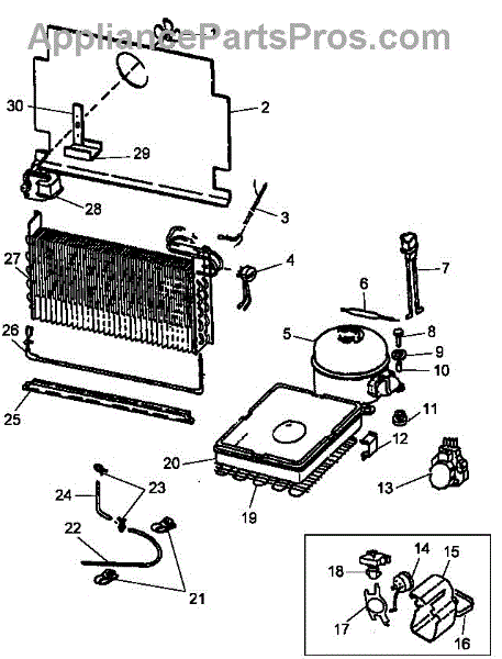 Replace a faulty heat exchanger if water is freezing in the drain tube during defrost cycles. Compatible with various freezer and refrigerator models.