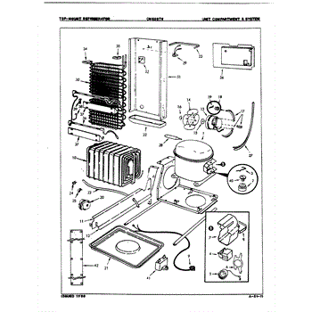 Plastic defrost pan. Evaporator pan hangs from side rails and rests on compressor.