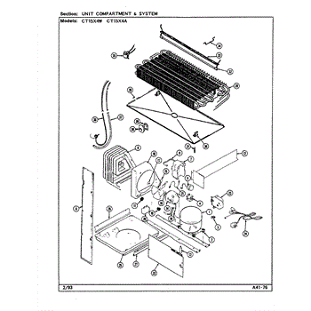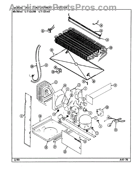 Plastic defrost pan. Evaporator pan hangs from side rails and rests on compressor.