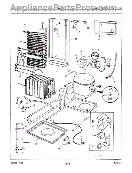 Plastic defrost pan. Evaporator pan hangs from side rails and rests on compressor.