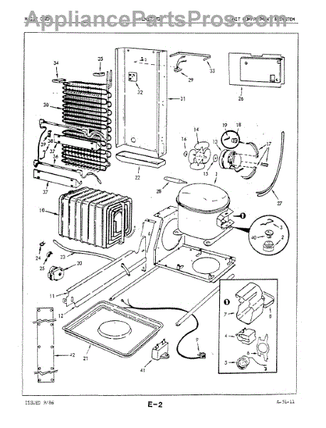 Plastic defrost pan. Evaporator pan hangs from side rails and rests on compressor.