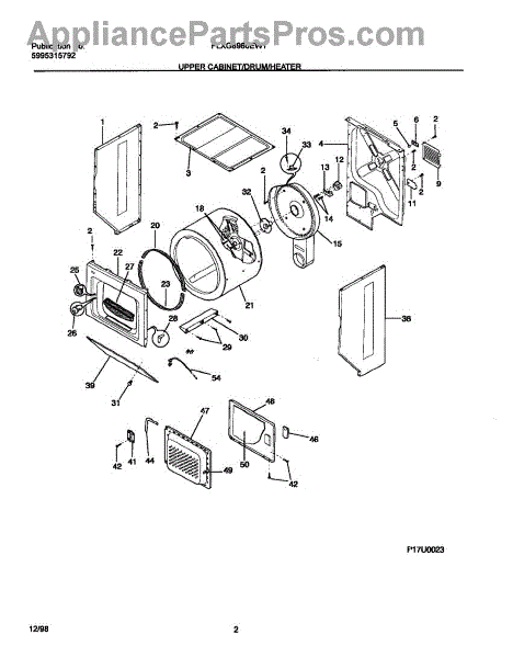 The Drum Bearing Bracket is an OEM replacement part for Frigidaire dryers. It holds and supports the drum bearing, which allows the dryer drum to spin smoothly during the tumbling and drying cycle. Causes of failure can be cracking or breaking of the bracket over time due to constant use and stress. Improper installation that puts strain on the bracket may also lead to issues. Symptoms of a bad drum bearing bracket include: