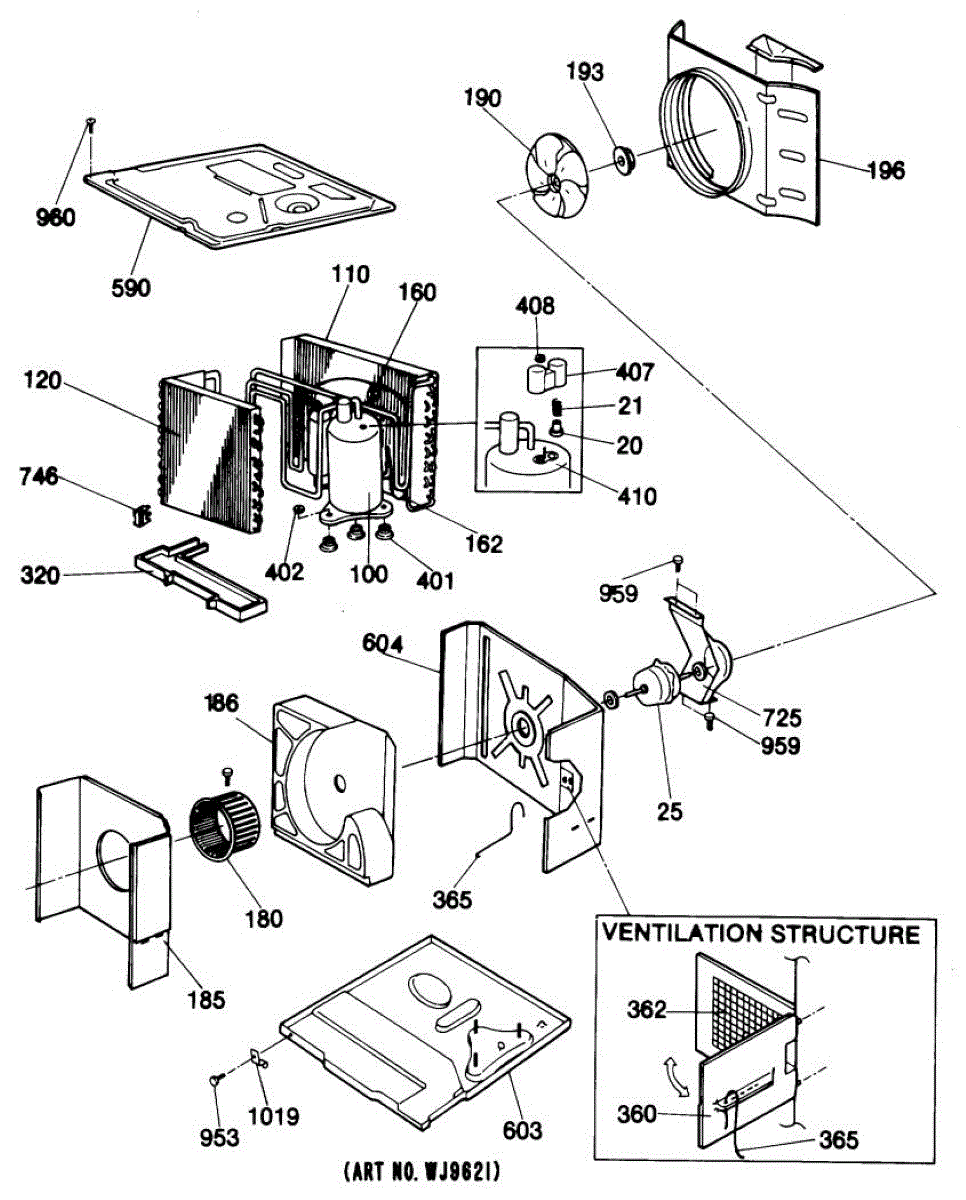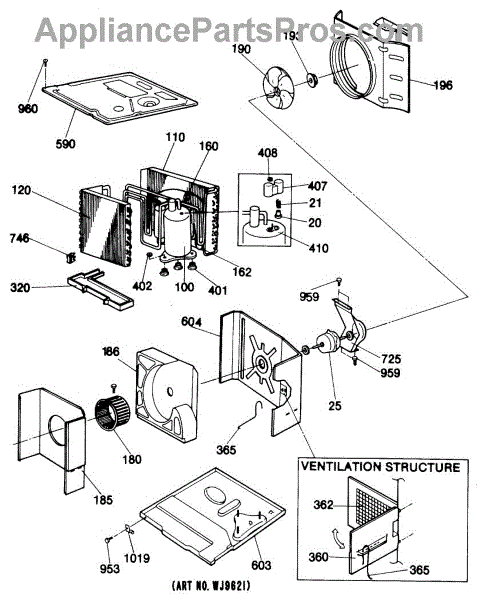 Parts for Ge KVM18DBM1: 03 - Ventilation Structure Parts