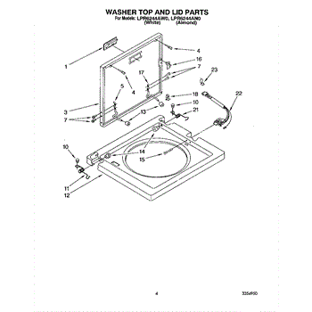 The Washer Lid Screw is an OEM part for Whirlpool washing machines. This 6-32 x .340 screw secures the washer lid to the hinge assembly, ensuring the lid opens and closes smoothly and stays securely in place during operation.