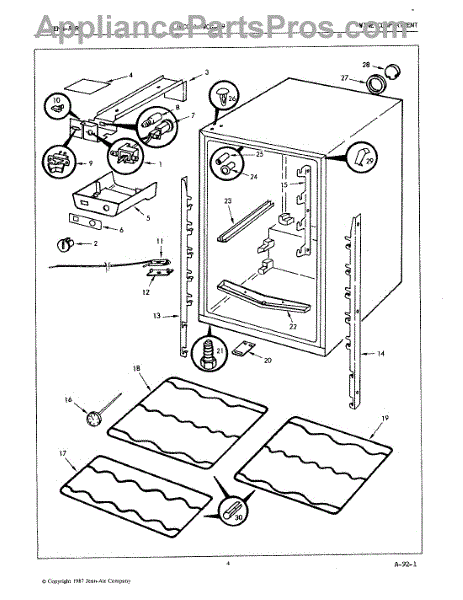 This factory screw secures appliance components to their mounting points. Replace missing, worn, or stripped hardware to restore a tight fit, proper alignment, and quieter operation across the affected assembly.