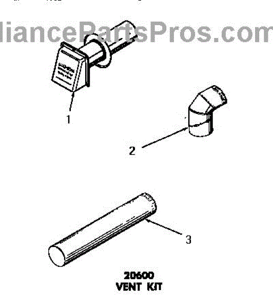 Parts for Amana DE1020: 04 - 20600 Vent Kit Parts