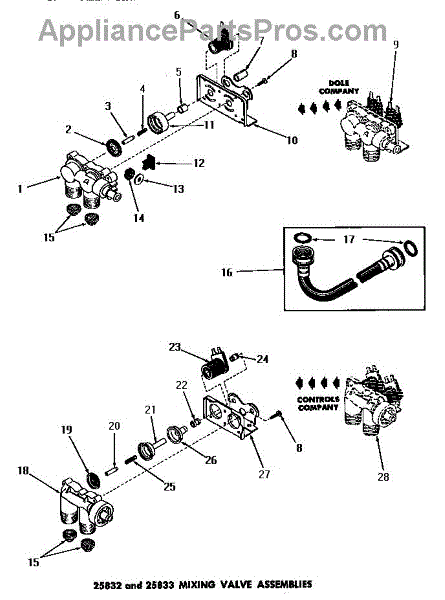 Parts for Amana DA6101: 04 - 25832 & 25833 Mixing Valve Assemblies Parts