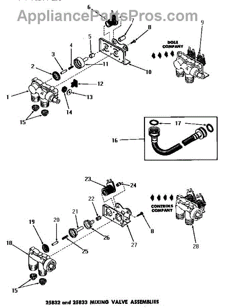 This small strainer sits inside the washer's water inlet valve and screens out sand, rust, and sediment from the supply lines. Replacing a clogged or missing screen restores normal fill flow and helps protect the valve.