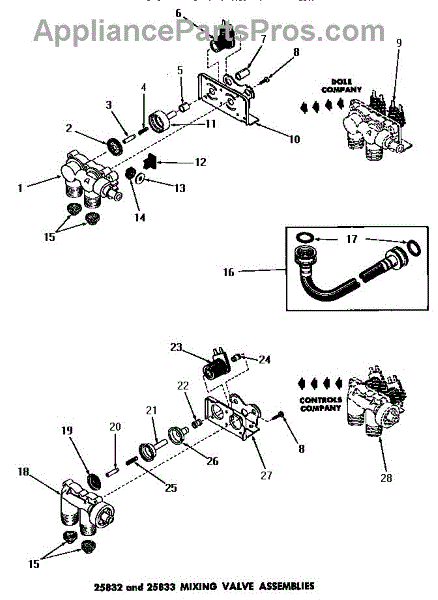 Parts for Amana DA9101: 04 - 25832 & 25833 Mixing Valve Assemblies Parts
