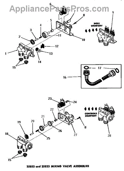 Parts for Amana FA3080: 04 - 25832 & 25833 Mixing Valve Assemblies Parts