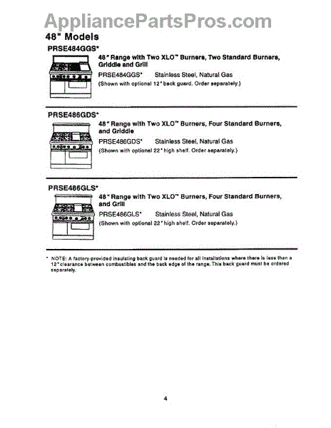Parts for Thermador PRSE486GDS: 04 - 48 Inch Models Parts