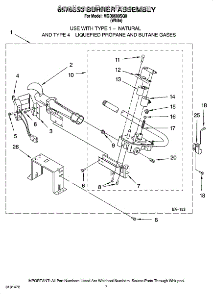 The Whirlpool LP gas conversion kit is an OEM replacement part responsible for allowing the conversion of a natural gas-powered dryer to operate on LP (liquid propane) gas. This kit contains the orifice, leak limiter, and an instruction sheet to guide the conversion process. Once the conversion kit is installed, it alters the fuel source of the dryer, allowing it to burn LP gas instead of natural gas. This conversion is necessary when a home or installation site lacks access to natural gas and relies on LP gas as the fuel source for heating appliances