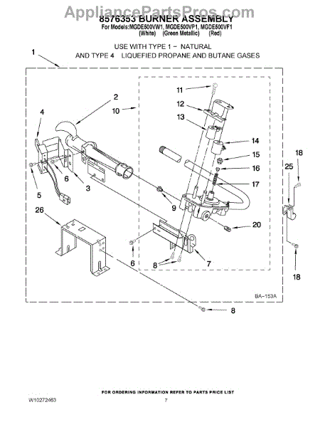Parts for Maytag MGDE500VF1: 04 - 8576353 Burner Assembly Parts