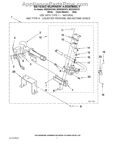 The Whirlpool LP gas conversion kit is an OEM replacement part responsible for allowing the conversion of a natural gas-powered dryer to operate on LP (liquid propane) gas. This kit contains the orifice, leak limiter, and an instruction sheet to guide the conversion process. Once the conversion kit is installed, it alters the fuel source of the dryer, allowing it to burn LP gas instead of natural gas. This conversion is necessary when a home or installation site lacks access to natural gas and relies on LP gas as the fuel source for heating appliances