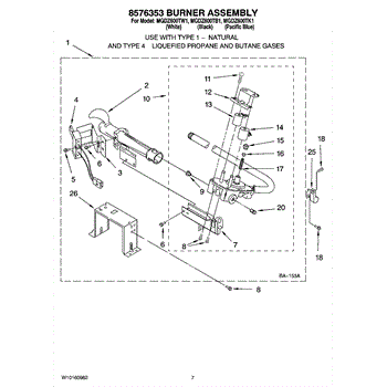 Parts for Maytag MGDZ600TK1: 04 - 8576353 Burner Assembly Parts