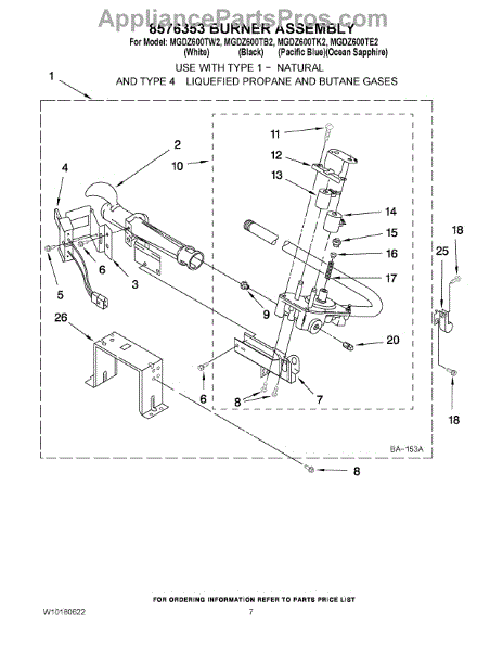 Parts for Maytag MGDZ600TW2: 04 - 8576353 Burner Assembly Parts