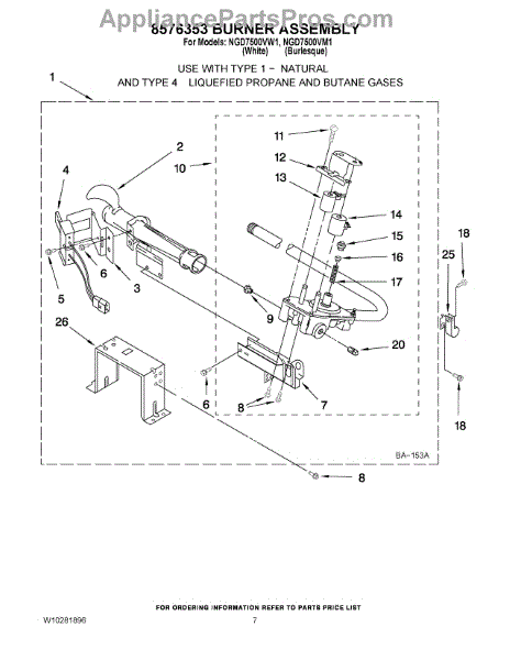 Parts for Maytag NGD7500VM1: 04 - 8576353 Burner Assembly Parts
