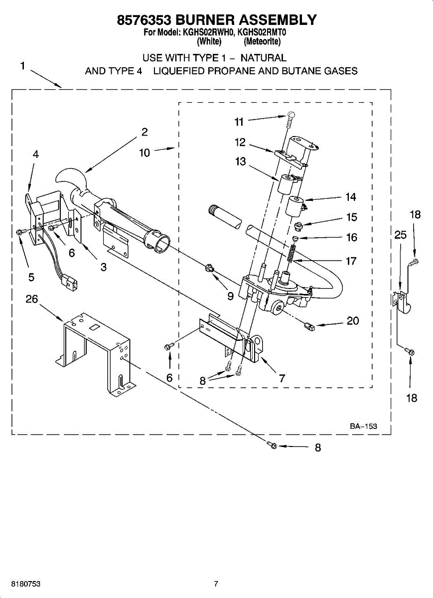 Parts for Kitchenaid KGHS02RWH0: 04 - 8576353 Burner Assembly Parts