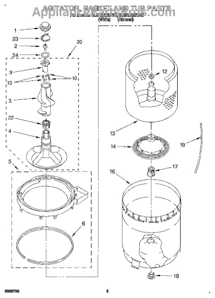 This is an inner tub basket intended for use with washing machines and combination washers and dryers. It is located inside the washing machine in the middle of the appliance. The inner tub basket is responsible for holding clothing during a washing cycle. It has an agitator in the middle and sides with holes so that water can leave when the tub is spinning. It is attached to the outer tub, which seals in the water.The inner tub basket can become damaged and cause loud noises, leak, or fail to drain. If this occurs, this component will need to be replaced. Basic tools will be needed for the process. Make sure the washing machine is unplugged for safety. The hoses will need to be removed before taking out the inner tub basket and replacing it with a new one. The inner tub basket is sold on an individual basis. It is an authentic OEM replacement part that is sourced directly from the manufacture. This part is compatible with washing machines and washer/dryer combination appliances made by Inglis, Estate, Admiral, Crosley, Roper, Magic Chef, Amana, KitchenAid, Maytag, Kenmore, and Whirlpool.