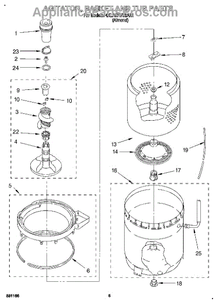 Parts for Whirlpool 4XLA87W92AN1: 04 - Agitator, Basket And Tub Parts