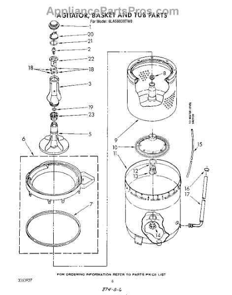 Parts for Whirlpool 6LA5800XTW0: 04 - Agitator, Basket And Tub Parts