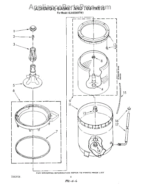 Parts for Whirlpool 6LA6300XTF1: 04 - Agitator, Basket And Tub Parts