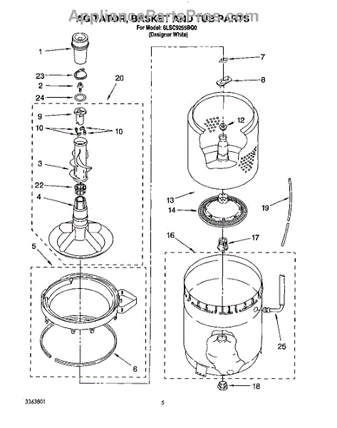Parts for Whirlpool 6LSC9255BQ0: 04 - Agitator, Basket And Tub Parts