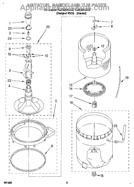 Parts for Whirlpool 7LSC8244BQ0: 04 - Agitator, Basket And Tub Parts