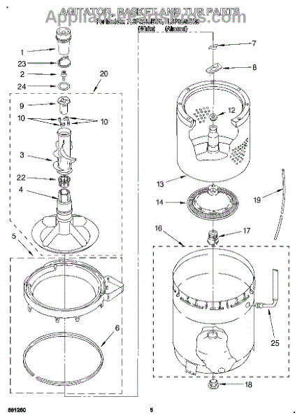Parts for Whirlpool 7LSP9245BW0: 04 - Agitator, Basket And Tub Parts