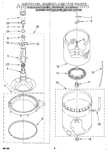Parts for Whirlpool 8LSC6244BQ1: 04 - Agitator, Basket And Tub Parts