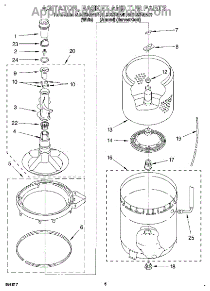 Parts for Whirlpool 8LSC8245AG1: 04 - Agitator, Basket And Tub Parts