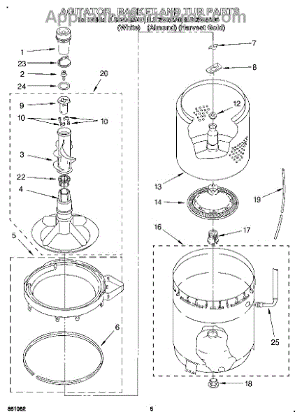 Parts for Whirlpool 8LSC8245AN0: 04 - Agitator, Basket And Tub Parts