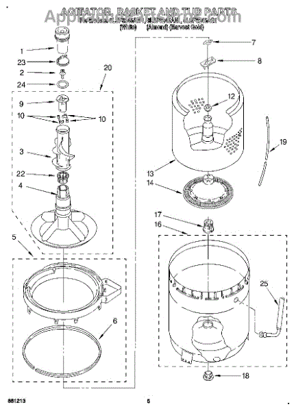 Parts for Whirlpool 8LSP8245AW1: 04 - Agitator, Basket And Tub Parts