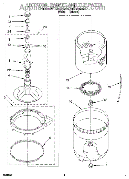 The Complete Agitator Assembly is an OEM part for Whirlpool washing machines. This assembly includes the central vertical agitator component along with the retainer ring. Together they are responsible for the agitation and rubbing motions that work to remove soils and stains from clothing during wash cycles. Causes of a bad agitator assembly can include wear and tear leading to wobbly or loose motions, cracks in plastic components from repeated impacts, or corrosion of metal components. Symptoms of a bad complete agitator assembly include:
