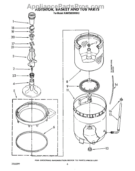 Parts for Kitchenaid KAWE860WWH2: 04 - Agitator, Basket And Tub Parts